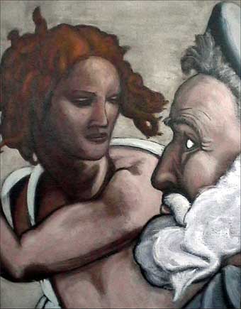 Angel & Ezekiel, after Michelangelo's Sistine Chapel, 11" x 14", acrylic on canvas board